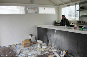 The Sugar Bowl bar was blown away and taken by hurricane Sandy, then washes up after the seven mile journey, intact with fully stocked bar and its tables and chairs.